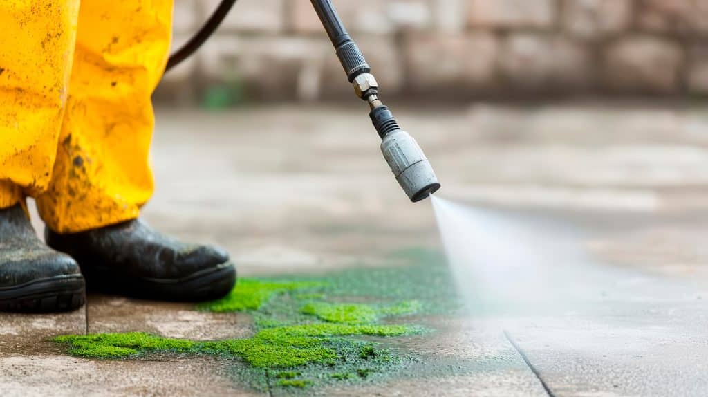 Når vi udfører fliserens, starter vi med at rense overfladen for alger, mos, snavs og flisepest.